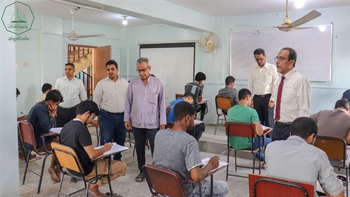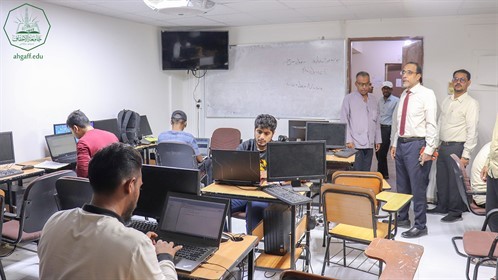 دشن البروفيسور صادق عمر مكنون نائب رئيس جامعة الأحقاف صباح يوم الخميس 12 ديسمبر الإمتحانات الفصلية لطلاب كلية هندسة و علوم و الحاسوب و كلية الإدارة و الإقتصاد , حيث طاف البروفيسور صادق عمر مكنون بالقاعات الإمتحانية ليطلع على سير العملية الإمتحانية بإنتظام وبحضور جميع الطلاب .