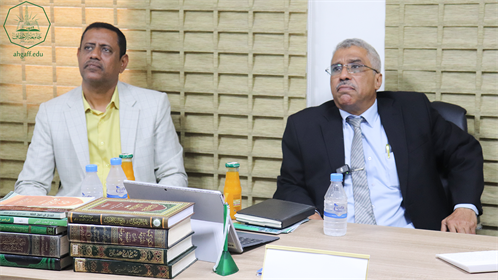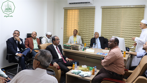 حضر اللقاء عميد الجودة والاعتماد الأكاديمي بجامعة الأحقاف البروفيسور احمد خرد والأمين العام للجامعة الأستاذ فائز احمد بن شمله