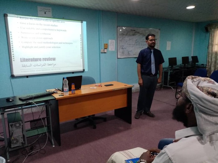 أقيم بمركز بحوث حضرموت التابع لجامعة الاحقاف مساء يوم أمس الأربعاء الموافق 23/02/2022 الأمسية العلمية *أساسيات البحث العلمي* قدمها الدكتور *حمزة العيدروس*. ونتيجة للإقبال الكثير والطلب المتكرر لإقامتها، فالمركز أعاد تقديم هذه الأمسية حيث استمرت لمدة 3 ساعات تدريبية إستفاد منها أكثر من 25 متدرب ومتدربة من طلاب البكالوريوس والدراسات العليا.