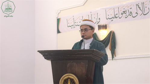 وفي الحفل الذي حضره رؤساء الأقسام وأساتذة الكلية وموظفوها وطلابها وجمع غفير من المواطنين وأولياء أمور الطلاب، افتتح الحفل بآيات من كتاب الله تعالى قرأها الطالب محمد رفعت الأندونيسي ثم حديثين من سنة المصطفى صلى الله عليه وسلم بالسند المتصل الى النبي صلى الله عليه وسلم قرأهما الطالب سيد محمد مولى الهندوان.